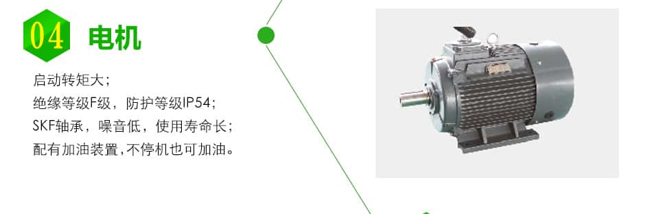 轉(zhuǎn)子:選用對(duì)稱型線,運(yùn)行效率高,選用圓柱滾動(dòng)軸承,提高了承受能力。支撐著轉(zhuǎn)子可靠的運(yùn)行,磨損小,維護(hù)保養(yǎng)費(fèi)用低,主機(jī)壽命長(zhǎng),可靠安全性高。
