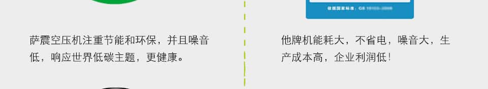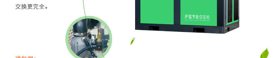 采用薩震空壓機(jī)主機(jī),無(wú)振動(dòng),低噪音,大轉(zhuǎn)子,低轉(zhuǎn)速,強(qiáng)大的心臟決定了整機(jī)的優(yōu)異性能。轉(zhuǎn)子經(jīng)嚴(yán)格的動(dòng), 靜平衡試驗(yàn), 使其運(yùn)轉(zhuǎn)平衡更好, 振動(dòng)更小, 噪聲更低,同時(shí)在直徑不變的情況下,轉(zhuǎn)子長(zhǎng)度增加,有效壓縮面積增加,從而達(dá)到流量增加,功耗降低。